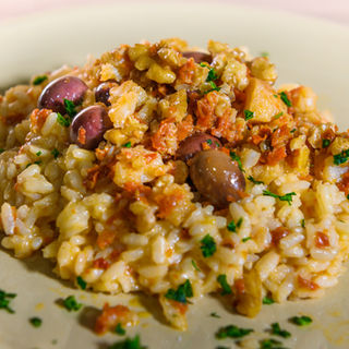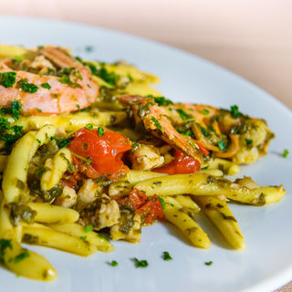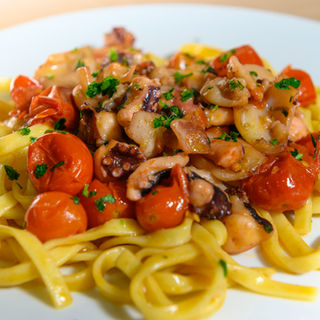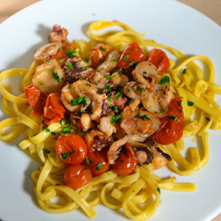Tra i primi, vi consigliamo gli Strascinati del Porto con Moscardini, Pomodoro e Cozze, oppure all'Ancora con Pesce Spada, Radicchio e Pomodorini, gli Scialatelli alla Pirara con Polipo Seppie e pomodorini, o ancora i ricchi Spaghetti al Veliero con Gamberoni, Vongole, Calamari e Pomodorini.